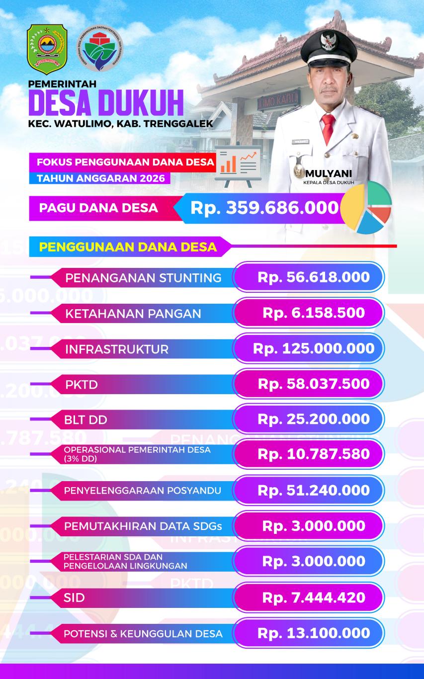 PELAPORAN FOKUS PENGGUNAAN DANA DESA TAHUN 2026 DESA DUKUH KECAMATAN WATULIMO KABUPATEN TRFENGGALEK